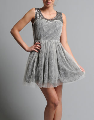 This dress is a little unusual but would be sure to turn heads! It's a unique piece perfect for parties and smart occasions and it's also quite fun! The seuqin, pearl and net textures mixed together still make it look quite classy too!