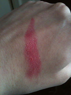 The swatch is a very accurate colour, it has small sprinkles of glitter and is quite a bright-rosy pink but definitely not a red. So other than the shade name being a little misleading it really is beautiful.